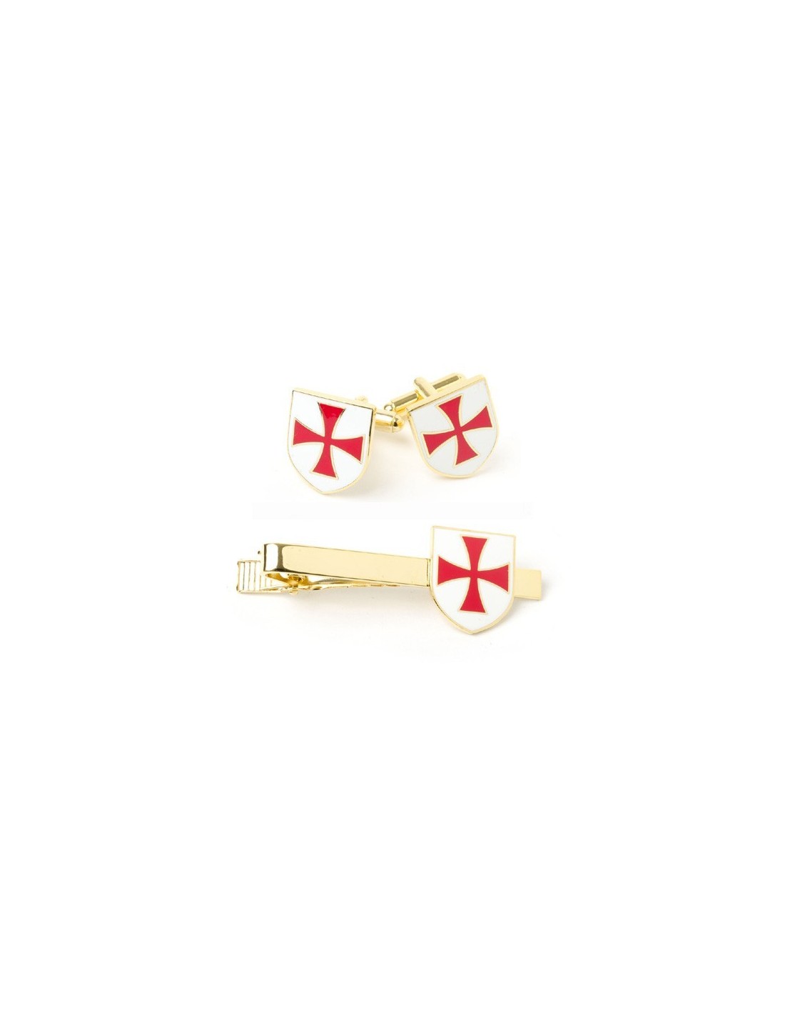 Knights Templar mansjett og sash klips sett. Vakker forgylt kvalitet med hvit og rød emalje.