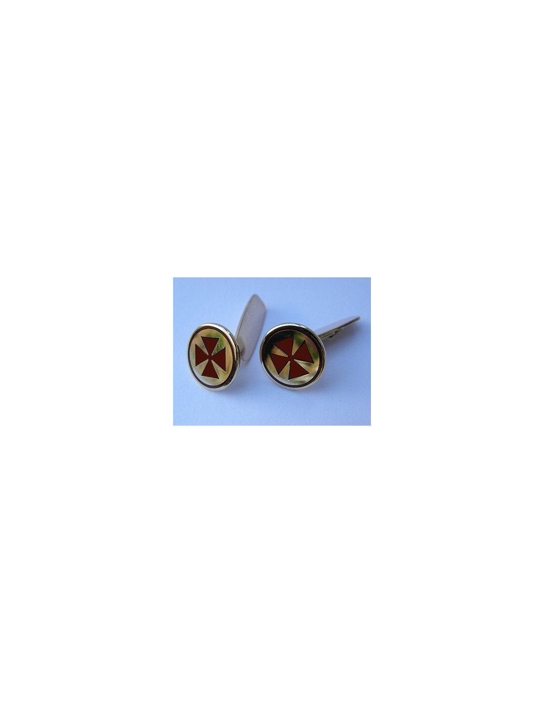 Manschettknappar 14 karat guld m. Tempelriddarkorset i röd emalj.